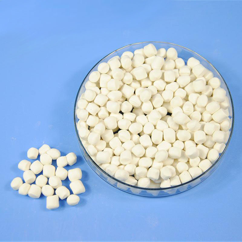 1. the raw powdered vulcanising agent 100 µm is completely sieved, so that no dust is generated after processing into master rubber granules, no allergy to the skin is caused and the health of the operator is protected; the activity of the integrated accelerator is effectively guaranteed.