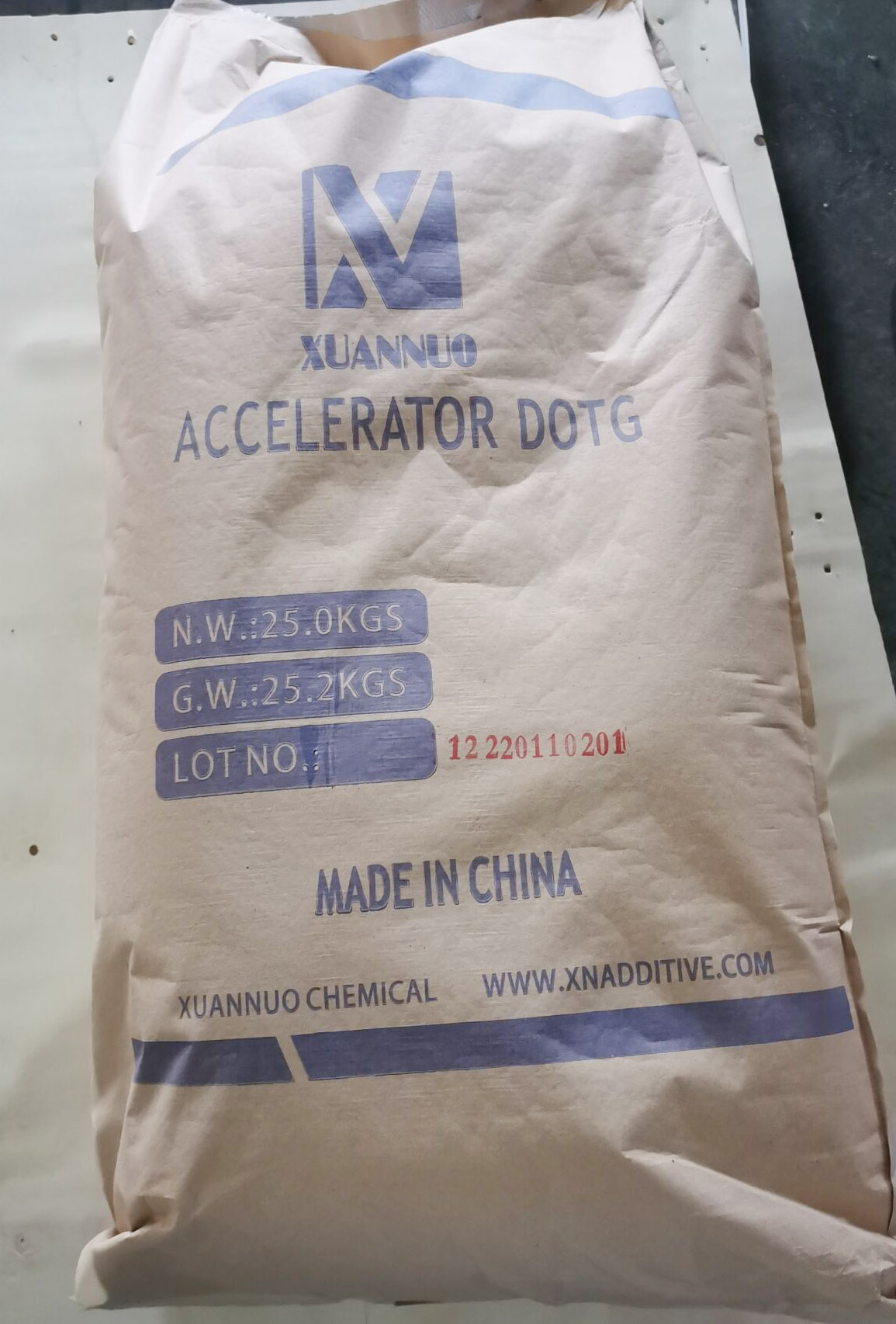 Applications:When DOTG was combined with thiols, subsulfoamides, cholams and dithiocarbamates, synergistic effect and secondary promotion effect could be obtained, cross-linking density and curing rate were improved. Mainly used for vulcanization of acrylic rubber.
