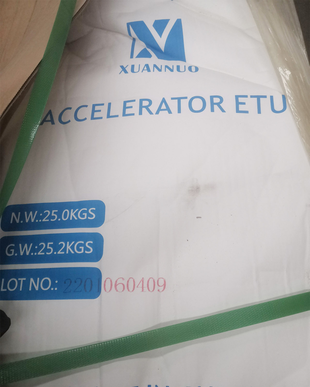 Ethylene thiourea (ETU,NA-22) has a bitter taste. Freely soluble in hot water. Soluble in alcohol, ethylene glycol and pyridine, insoluble in ether, benzene, chloroform and petroleum ether. Promoter for all types of neoprene, chlorosulfonated polyethylene rubber and polyacrylate rubber. It is suitable as safety accelerator for chlorobutylamine in non-vulcanized system, mainly used as safety accelerator for chlorobutylamine in non-vulcanized system, mainly used in industrial products, covered wires, shoes, clothes, etc. This product is also an auxiliary brightening agent for copper plating wit