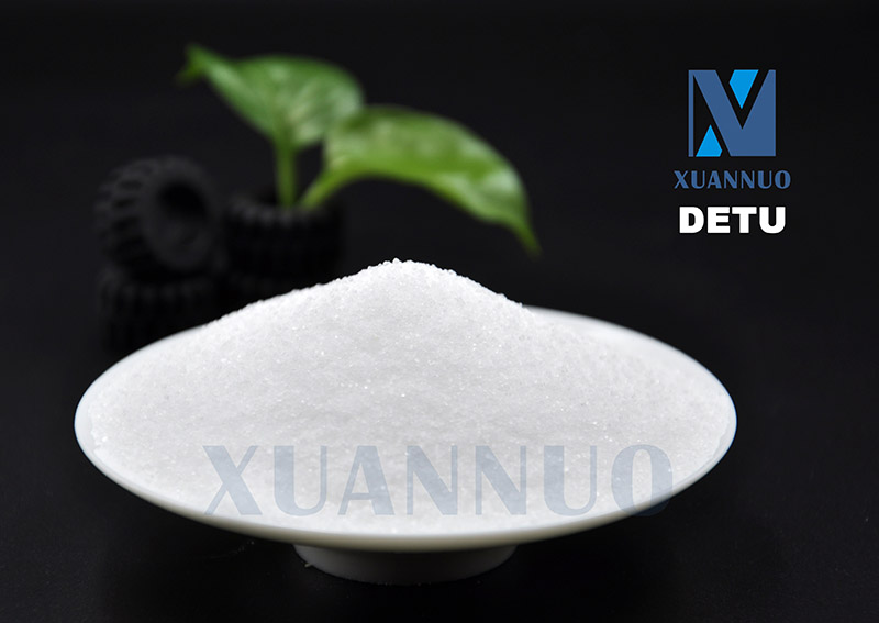 N,N'-Diethyl thiourea (DETU) is rarely used for diene rubber because of its low promotion effectiveness and poor anti-scorching properties. It has a role in the vulcanization of chloroprene rubber and can produce chloroprene vulcanized rubber with good tensile strength, hardness, compression deformation and other properties. Compared with ETU, coking and vulcanization are fast, but the flatness of vulcanization is better. Easy to disperse and no frost spraying.
