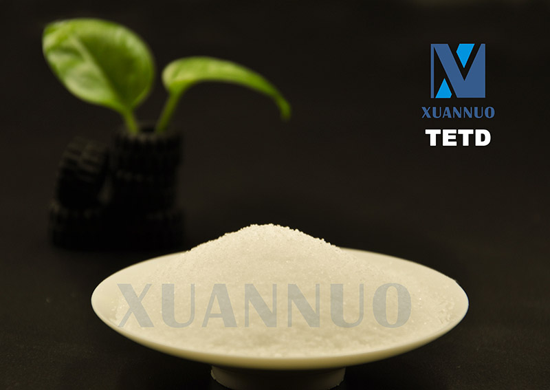 Tetraethyl thiuram disulfide(TETD) is white powder, tasteless, insoluble in water, dilute acid and dilute alkali, used as super accelerator and vulcanizing agent for natural rubber, butadiene rubber, nitrile rubber, butyl rubber, butadiene rubber and latex. Usually used in the manufacture of cables, rubber cloth, rubber shoes, inner tubes, bright-colored products, etc.